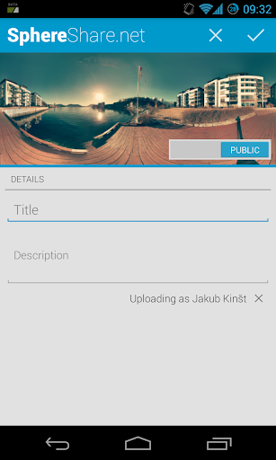 Mobile application for uploading Android 4.2 Photo Spheres to http://sphereshare.net web application. You can share a private picture with anyone or add it to a public Photo Sphere gallery, view popular Spheres and other's profiles.